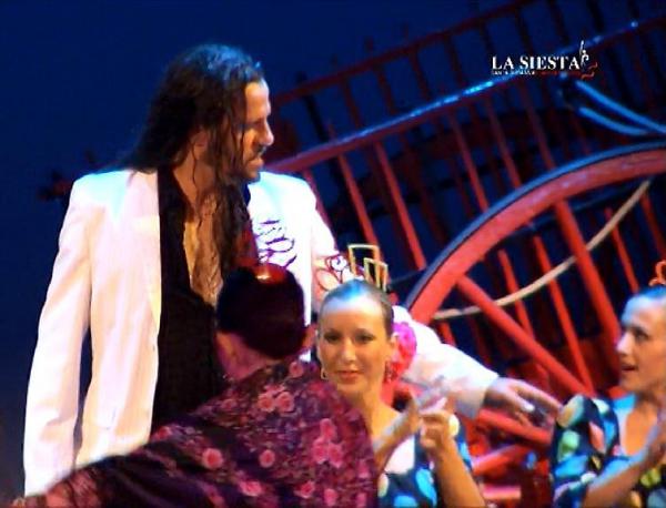 Впрочем, он уже явно вышел из вундеркиндного возраста, потому что на представлении ему на вид было явно в районе сорока. "La Siesta" он ставит уже 12 лет - с 1999 года. Я поискал в Интернете информацию о нем - не нашел ни на английском, ни на испанском. Единственно, что о нем написано, лежит на сайте шоу. Я нашел несколько известных гитаристов фламенко, баскетболиста, но танцора Хосе Леона не обнаружил. Ну, и ладно. Просто было интересно - правда ли то, что пишут на сайте шоу.