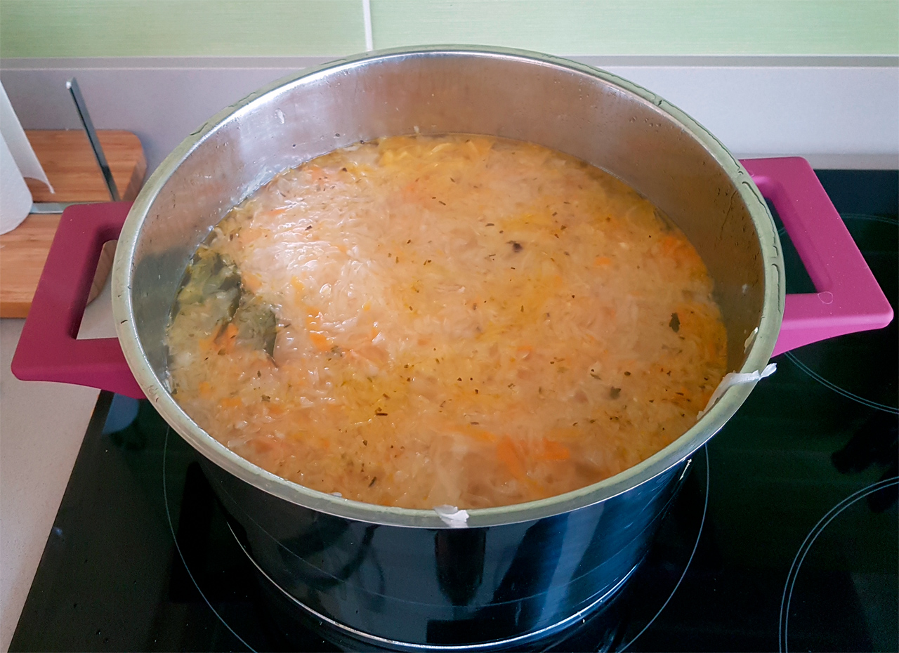 Так вот, если с ингредиентами всех остальных супов в Испании, в общем-то, проблем нет (сухие белые грибы я просто из Москвы привожу в мешочке, хотя тут всякие сушеные и несушеные грибы тоже есть), то вот со щами из кислой капусты поначалу была засада, потому что, как вы понимаете, на рынке тут кислую капусту никто не продает. И что это такое - в общем-то, никто не знает.