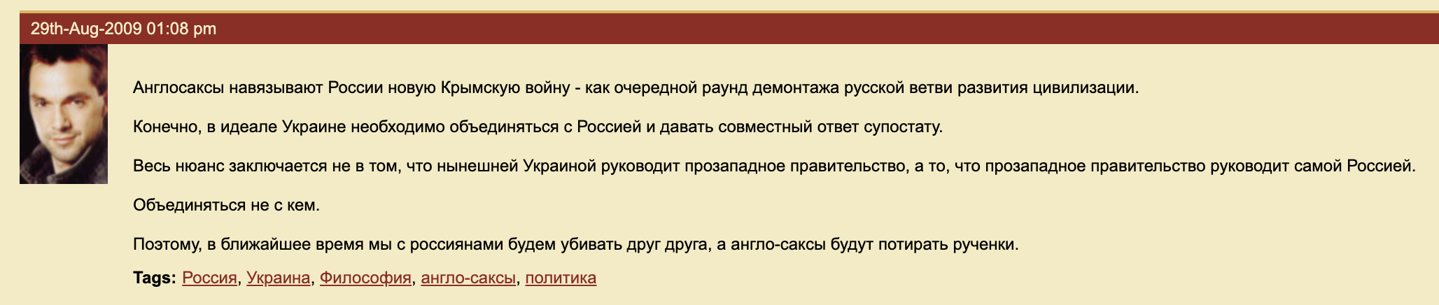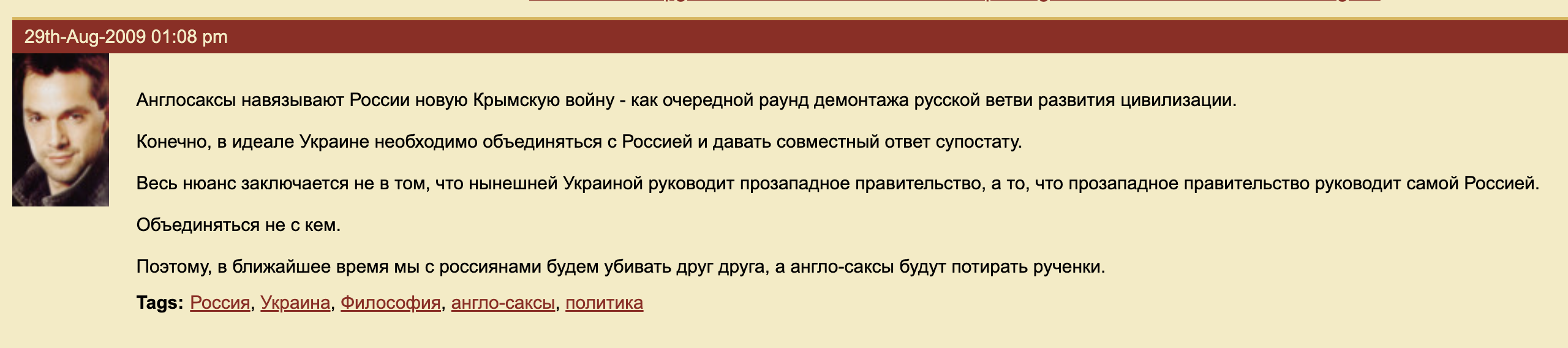 "Да. Возврат Крыма мог бы быть одним из важных геополитических приоритетов власти. Вот там Олимпиада стоила 50 миллиардов долларов. Но представьте, если бы мы из этих 50-ти 30 дали нищей Украине с условием, что она позволит провести в Крыму референдум о присоединении к России, еще 20 грамотно бы потратили бы на организацию этого референдума… На фальсификации и на грамотный политический пиар. Ну, почему бы нет? Как сказал в свое время Жозеф Де Местр, государства гордятся достижениями, тем, что для обычного человека является преступлением."
