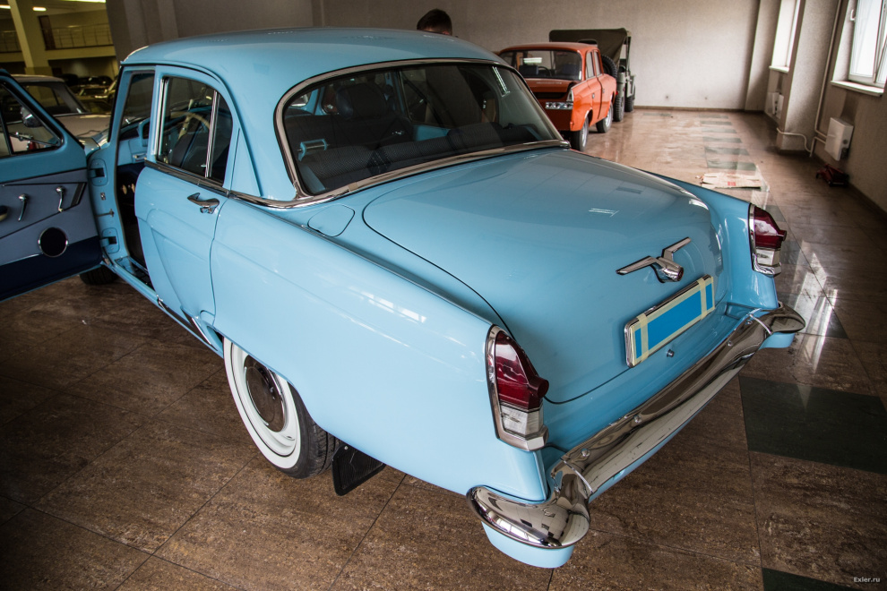Во время экскурсии по коллекции старинных автомобилей в компании "Старое время" обнаружил вот такую классическую "Волгу" (ГАЗ-21). Наш сопровождающий сказал, что это не просто восстановленная "Волга" для коллекции, а сделанная под заказ машина, на которой владелец собирается ездить.