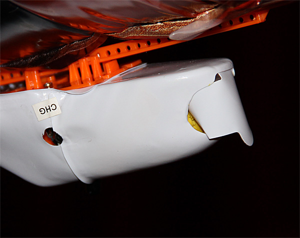 Вот эта белая коробочка крепится под брюшком - от нее идет штекер к хвосту.