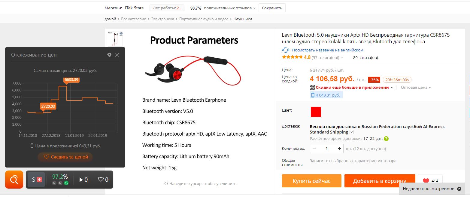 Я смотрю, на Али стали появляться недорогие беспроводные наушники с поддержкой кодека aptX HD - это максимально качественное воспроизведение по беспроводной связи. (Лучше качество дает только кодек LDAC, но с ним работают наушники производства Sony, более никакие другие - это их фирменный кодек.)