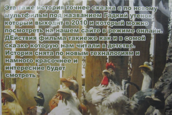 Михаил приобрел лицензионный диск с "Гадким утенком". Покупал в фирменном магазине, так что совершенно точно - лицензия. И вы посмотрите, что там написано на обложке - я вообще в шоке. Они, видать, текст специально заказывали у какого-то таджикского дворника. Это, наверное, такой новый подход.