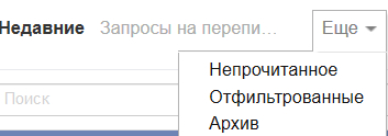 Некоторое время назад эти прекрасные люди поднатужились и сделали еще более идиотскую систему. Теперь у вас есть сообщения от френдов, так называемые "запросы на переписку" - это, как я понял, от людей, которые у вас не во френдах, но на вас подписались, - и есть также мутная ссылка "Еще". По которой никак не понять, что там также могут скрываться какие-то сообщения. В этой "Еще" есть "Отфильтрованное" - это то же, что и "Другие", только засунутое в самую задницу.
