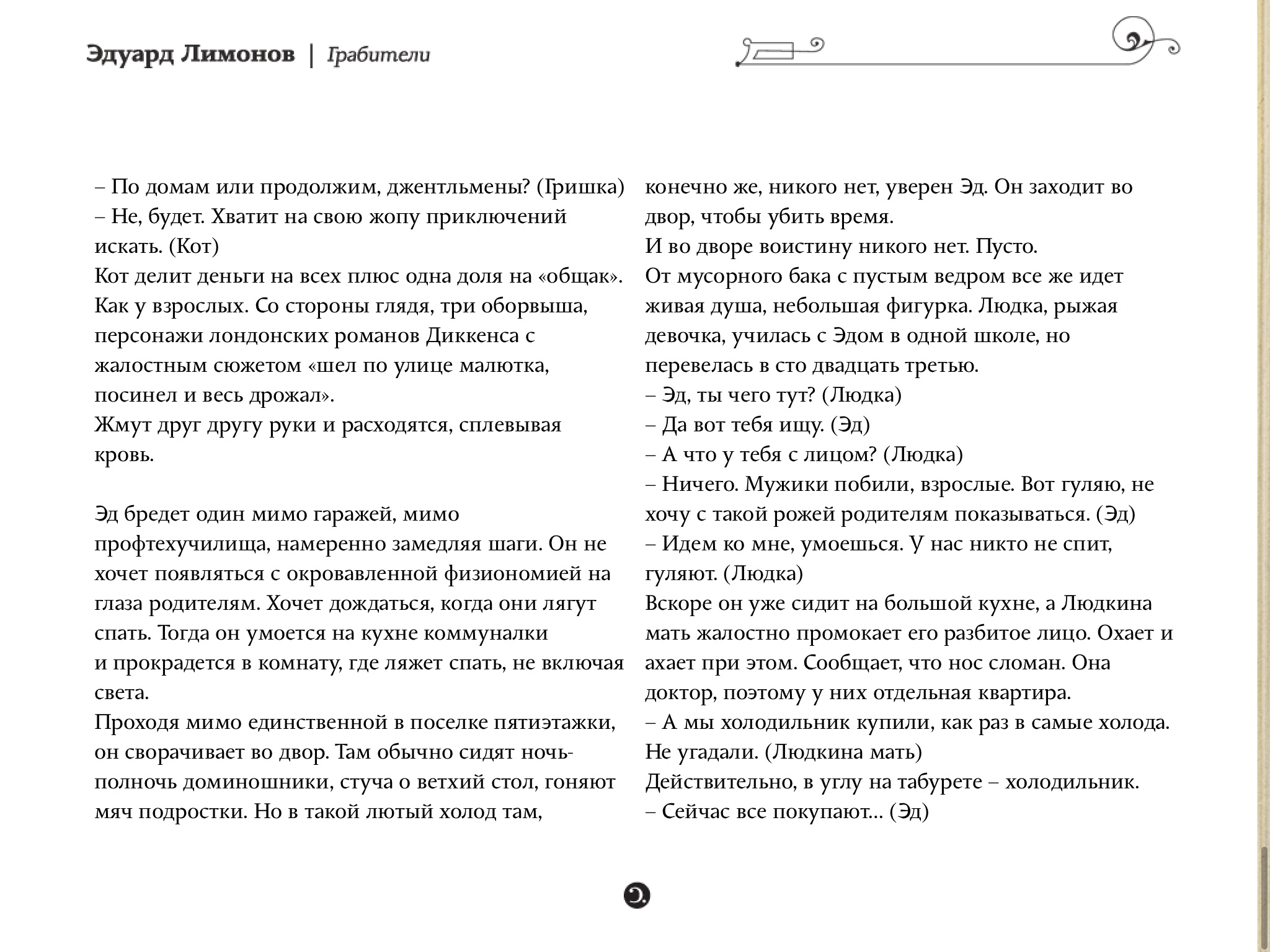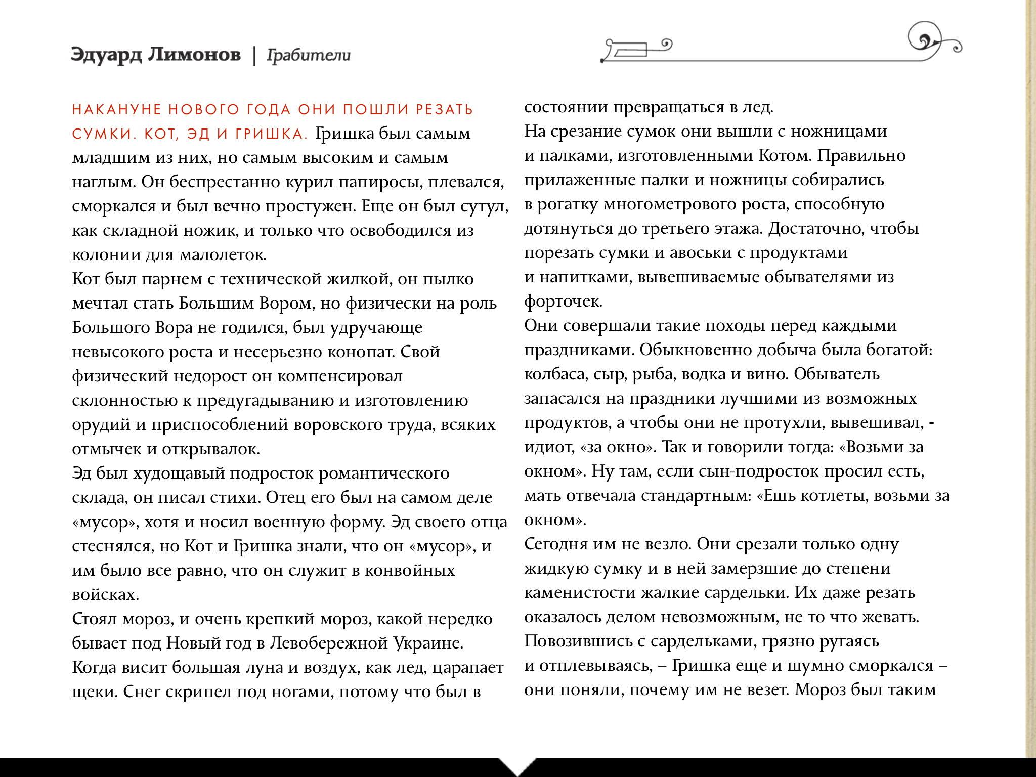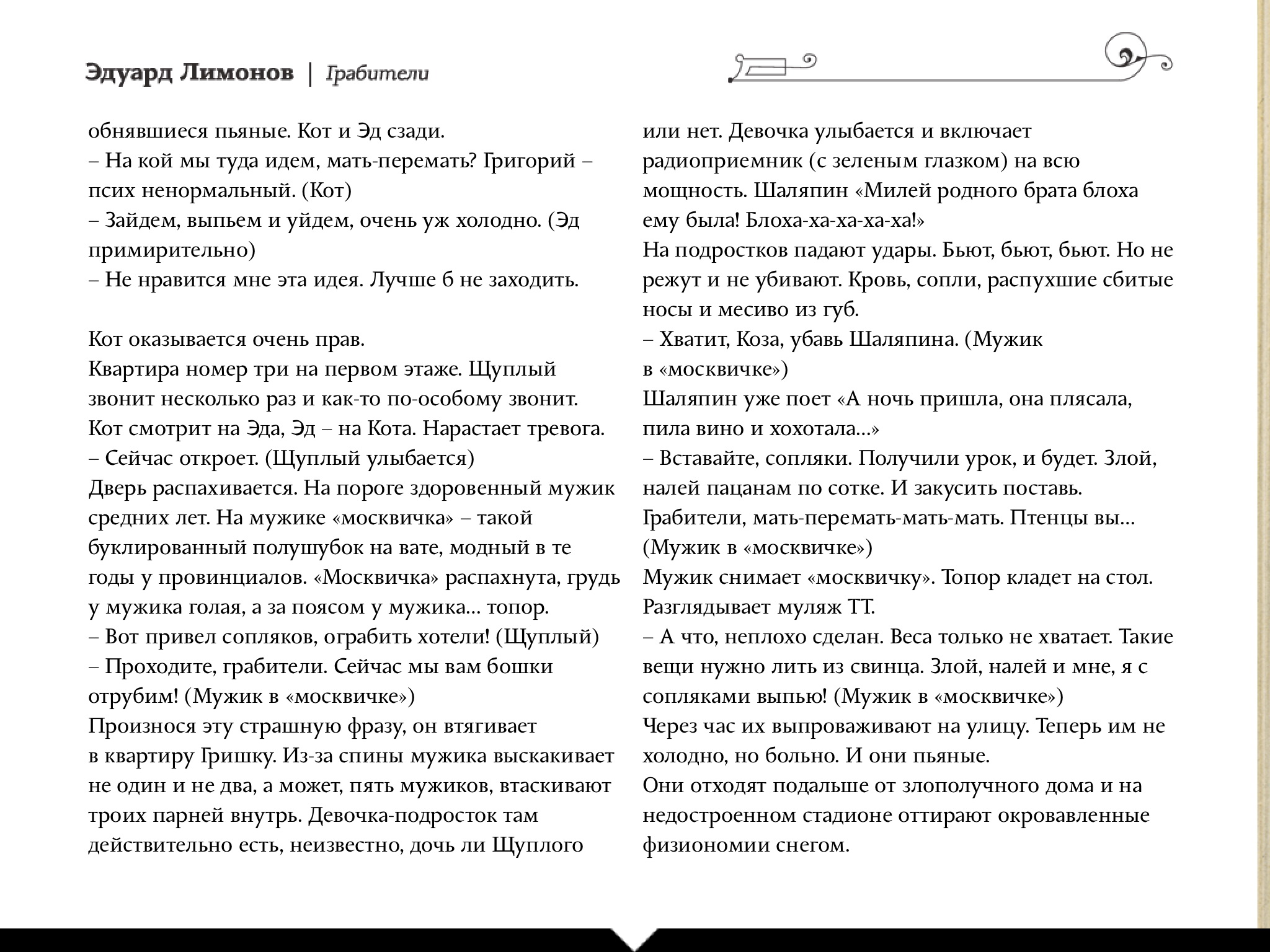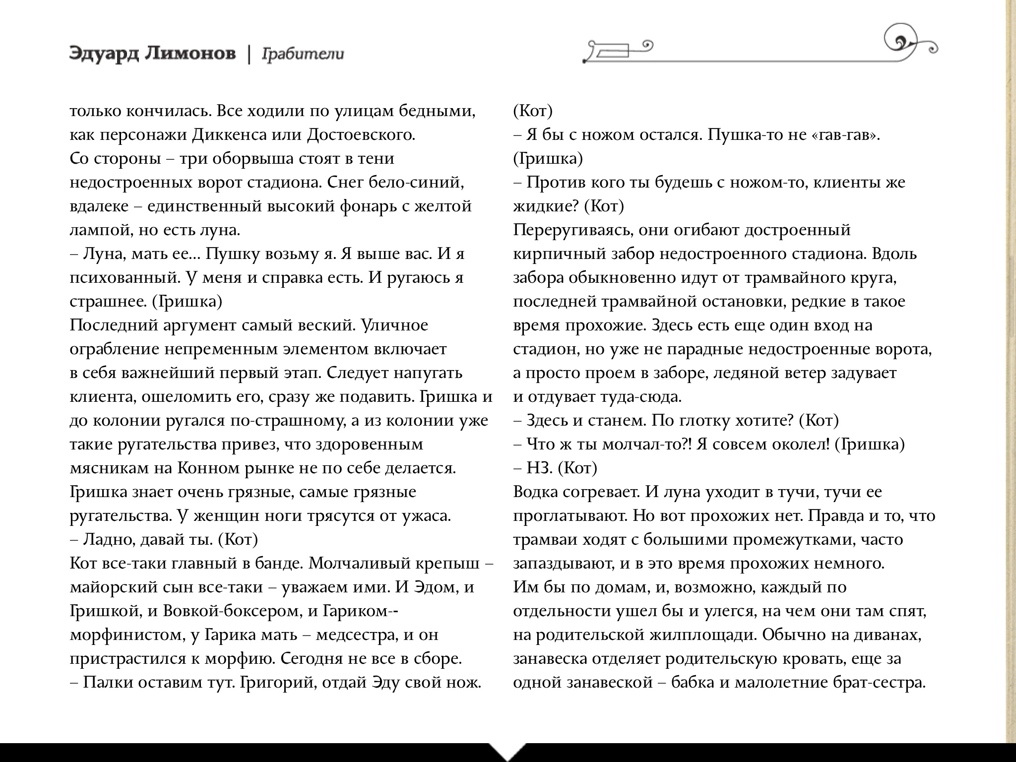Купил я на пробу для "Киоска" в планшете один номер "Сноба". Почитал, понял, что выписывать, конечно, не буду, не мое это. Но вот что меня поразило. Это номер #13-1. Литературный, так сказать, номер, посвященный Диккенсу. И там опубликован рассказ Лимонова "Грабители".