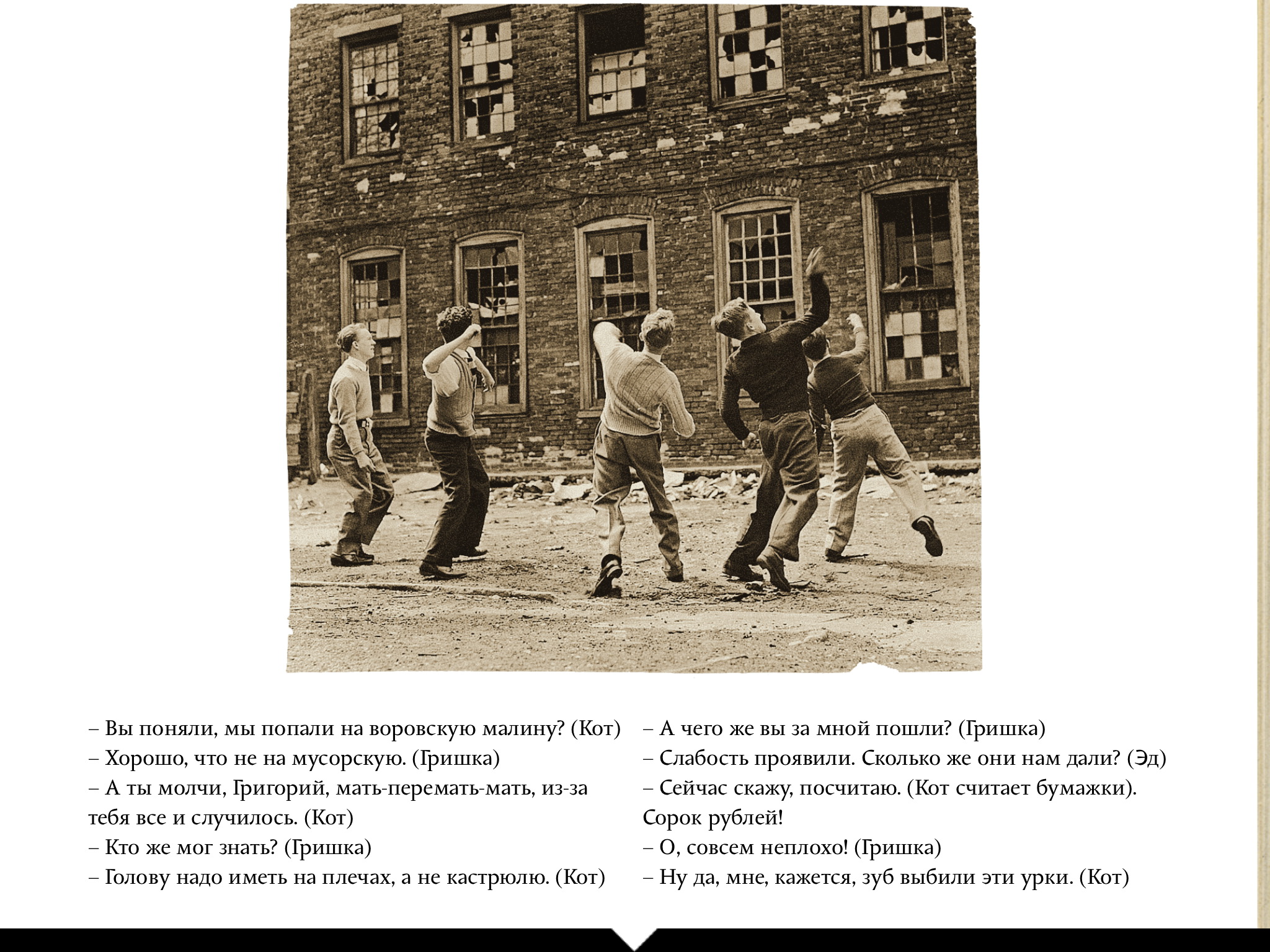 Вот посмотрите, каким языком друг с другом общаются в голодные послевоенные годы малолетки, вышедшие грабить прохожих. Орфографию оригинала сохраняю.