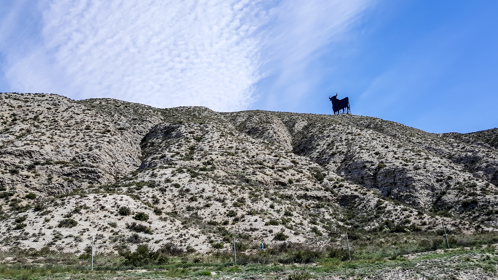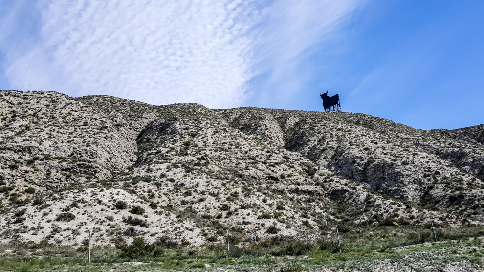 На подъезде к Сарагосе красуется бычок Осборн - их установлено несколько десятков по всей Испании. Первоначально это была реклама фирмы "Осборн", которая выпускает вина и коньяки. Но бычки так понравились, что в конце концов стали просто национальным символом. Сейчас их установлено 90 штук по всей стране (кроме Каталонии), а первого бычка поставили аж 60 лет назад.