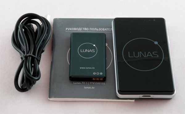 Устройство компактное плюс еще и снабжено аккумулятором. Вот комплект поставки: само устройство, аккумулятор, кабель USB-microUSB, руководство пользователя.