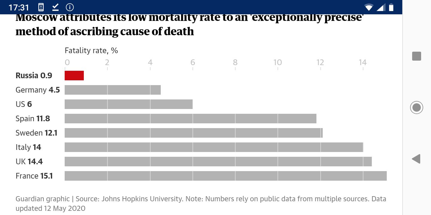 Смешное расследование. Это было очевидно сразу по первому случаю смерти в РФ. Сначала зачислили в жертвы короновируса. А затем вскрытие и причина смерти тромб. И я на самом деле не могу сказать, что это манипуляция. Ну вот куда эту первую жертву писать "по уму"?