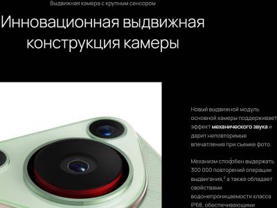 > The primary one is the most interesting one - it uses a 50MP 1" sensor with sensor shift stabilization and retractable lens with variable aperture. Huawei added a retractable mechanism to the main camera's lens which pops the camera up when in use. The rotating telescopic lens features an intricate motorized structure which Huawei tested for 300,000 cycles of expansion and contraction.