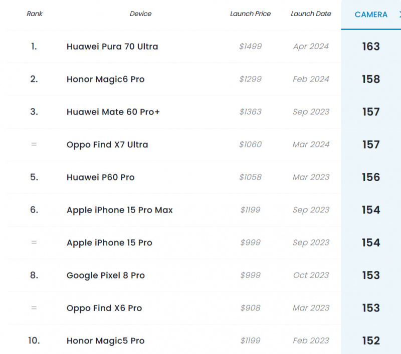 В издании DXOMark обновили свой рейтинг камерофонов, и теперь на первом месте - новый Huawei Pura 70 Ultra.