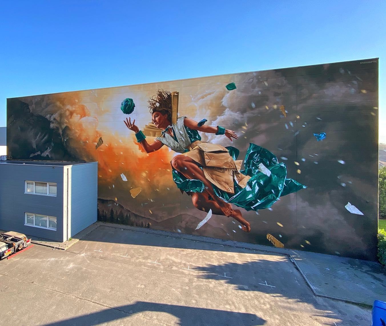 Компания CVB Ecologistics заказала Studio Giftig создание мурала, рассказывающего о том, за что выступает компания - к творческому подходу переработки отходов как сырья.