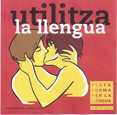 Хозяин киоска раздавал наклейки с надписью "Языковая платформа", на которой почему-то были изображены целующиеся парни. Если это намеки на каталанский язык, который их всех объединяет, так тут вроде бы два языка, судя по персонажам. Да и вообще, mariconez какой-то, как сказали бы мадридцы.