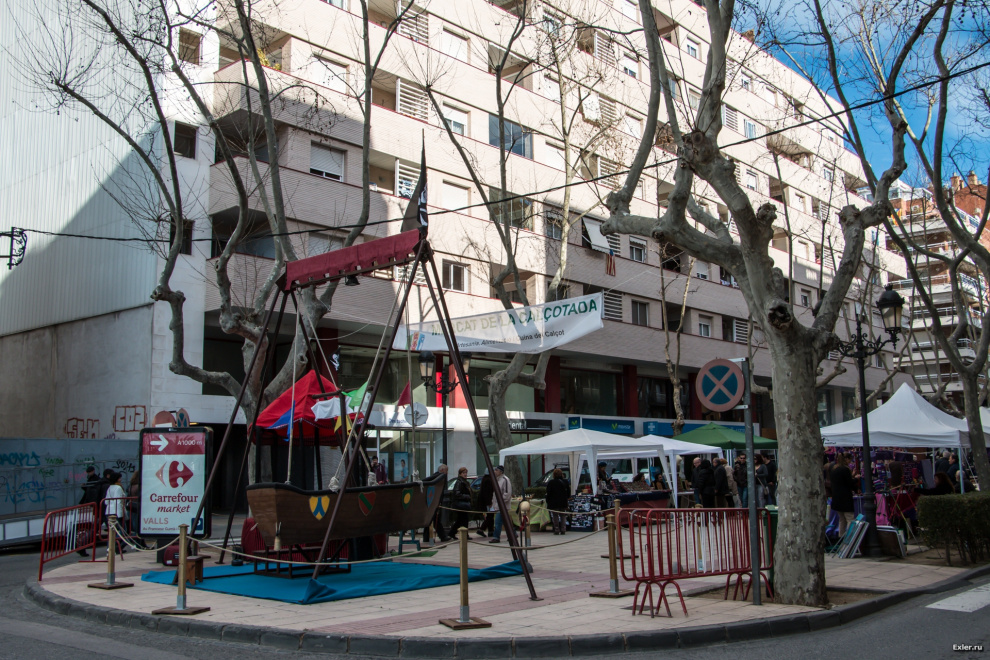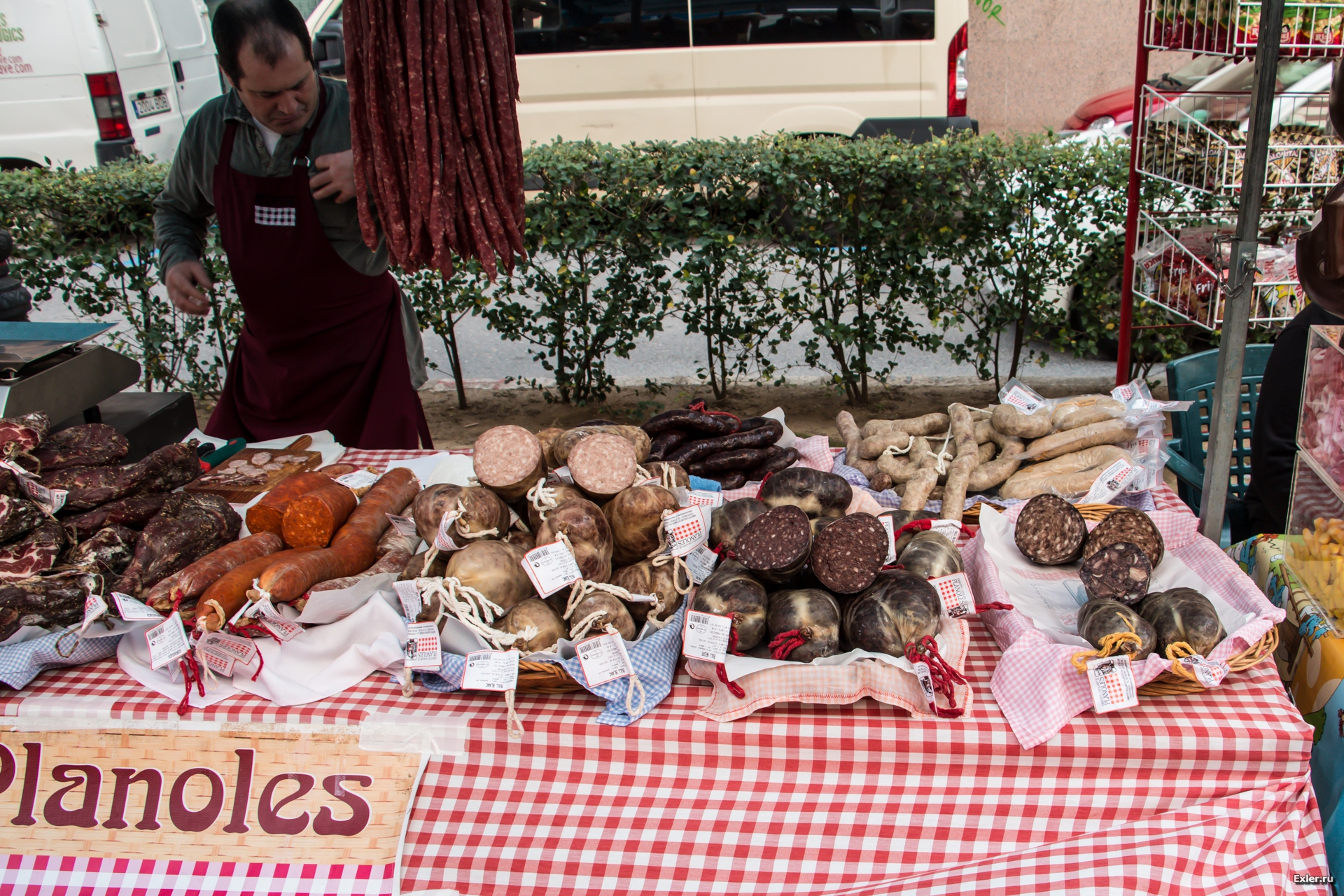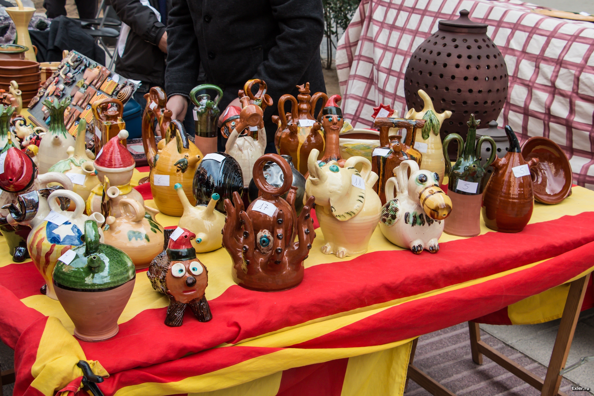 Прямо на входе в город - традиционная каталанская ярмарка: народные поделки, хлеб, сыры, колбасы, вино, готовая еда и всякая забавная фигня. И не совсем фигня.
