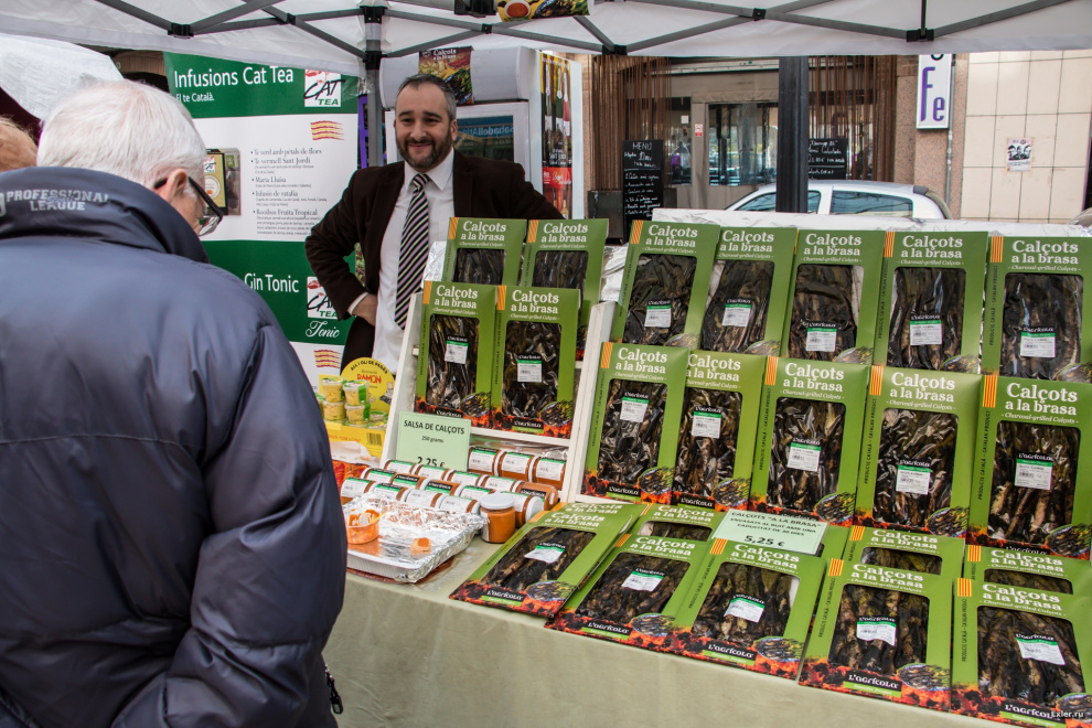 А это уже зажаренный на углях лук-кальсот, который можно принести домой, разогреть и устроить себе суррогат праздника. Кстати, обратите внимание на внешний вид продавца. Простой рабочий каталан, между прочим.