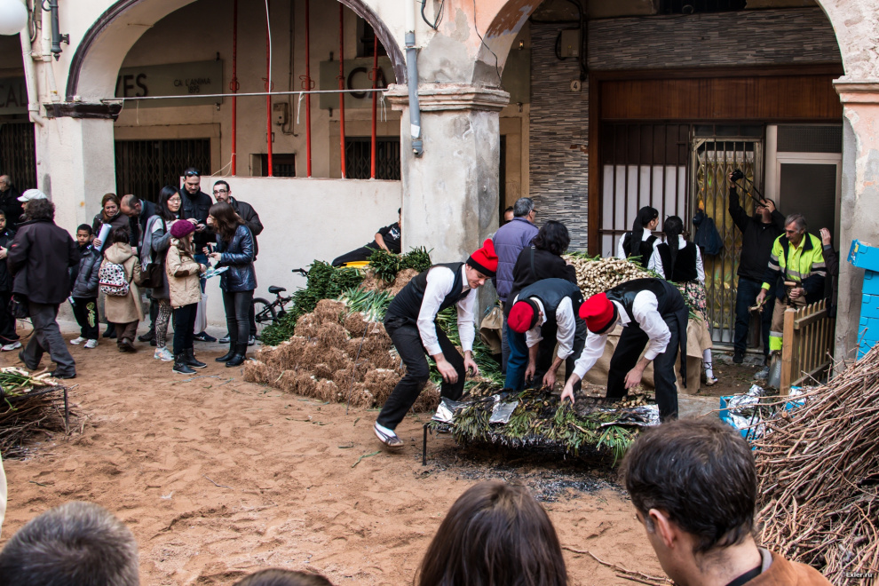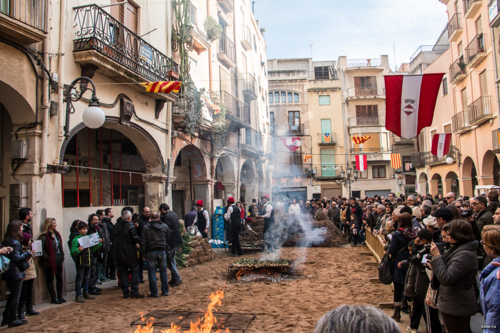 Другая площадь - ключевое мероприятие. За специальной загородочкой мужчины в каталанских костюмах ЖАРЯТ КАЛЬСОТ! Причем жарят его на сухой виноградной лозе - это считается самым правильным.