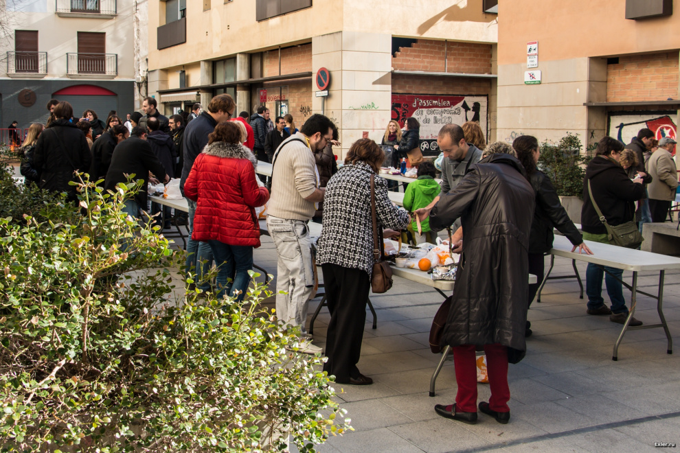 Кстати, по поводу местных. Во время праздника в Вальсе проводится много всего. Мастер-класс по приготовлению ромеско, мастер-класс по поеданию кальсотс (объясняют, каким жестом нужно снимать кожицу с головки лука, а то мы не знали), но самое главное - чемпионат по скорости поедания кальсотс. Вот тут все очень сложно. Нормальный каталан за один прием кальсотс съедает 12-20 штук (в смысле, стрелок лука). Но есть Квалифицированные Специалисты, которые на соревнованиях потребляют за ограниченное время сто, двести и даже более трехсот стрелок! Насколько я помню, один из прошлых рекордов - 350 штук кальсотс за 45 минут. Правда, запивая вином. Но от этого его подвиг не становится менее значимым. Причем он до сих пор жив, наш герой!