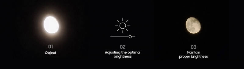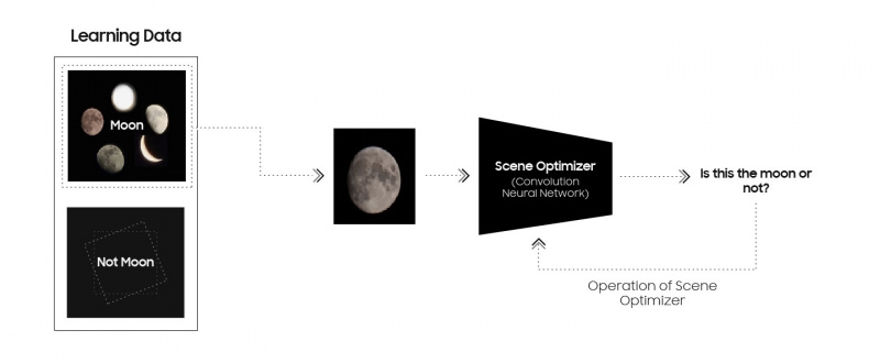 В рамках этого Samsung разработал функцию Scene Optimizer - функцию камеры, которая использует передовой ИИ для распознавания объектов и, таким образом, обеспечивает наилучшие результаты для пользователей. С момента появления серии Galaxy S21 функция Scene Optimizer смогла распознать Луну как специфический объект в процессе фотосъемки и применить к снимку механизм улучшения деталей.