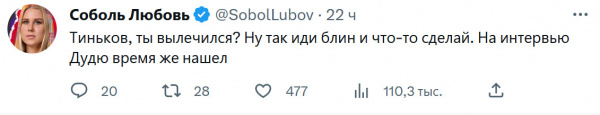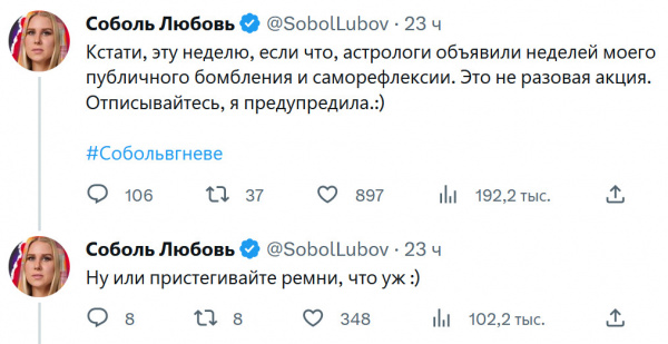 В стане ФБК неспокойно: их видная представительница Любовь Соболь в Твиттере разбушевалась не на шутку.