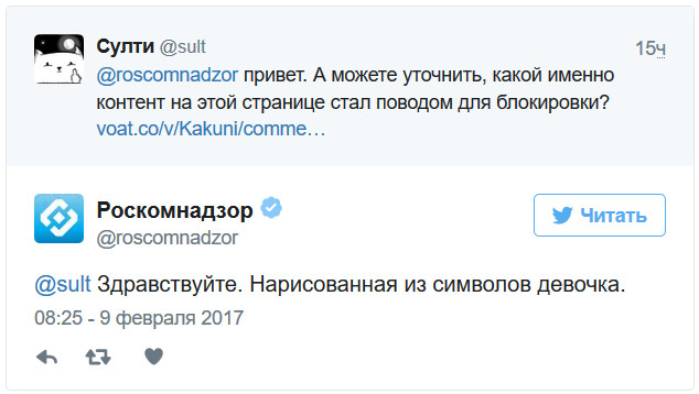 Я про "Роскомнадзор". Стоят на страже наших интересов, ограждают нас от контента, способного нарушить нашу психику.