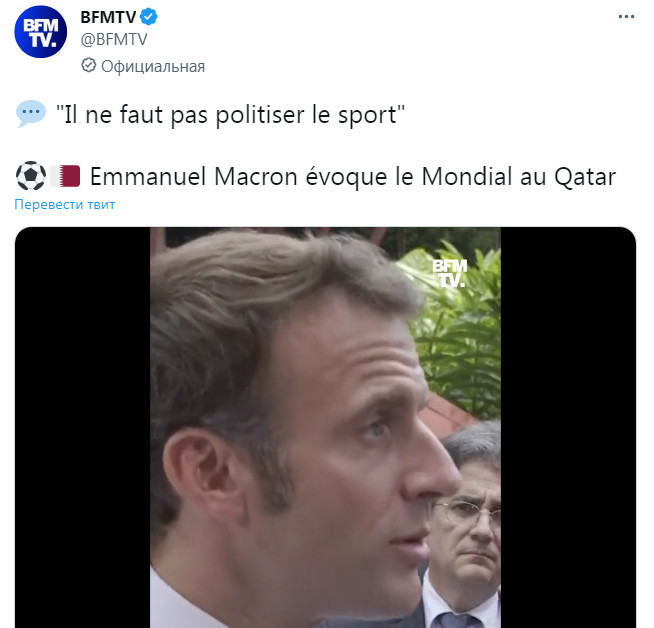 Он раскрыл детали приватного разговора не с кем-нибудь, а с президентом Франции Эммануэлем Макроном, который состоялся на саммите G20 в Индонезии. Как правило, такие беседы остаются не публичными, так что тот факт, что Бах решил рассказать об этом прессе, может говорить только об одном. Его попросили это сделать. Надо признать, что слова Макрона выглядят очень неожиданно на фоне происходящего в мире.