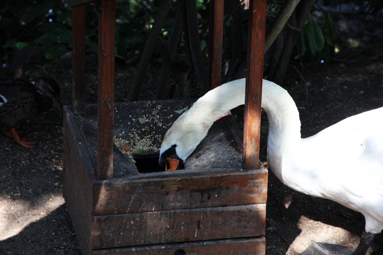 Еще один попугайчик проявлял чудеса сообразительности (ну точнее дрессировки). Ему рисовали всякие цифры и суммы цифр, а он должен был соответствующее количество раз продудукать в колокольчик. Это я тоже заснял.