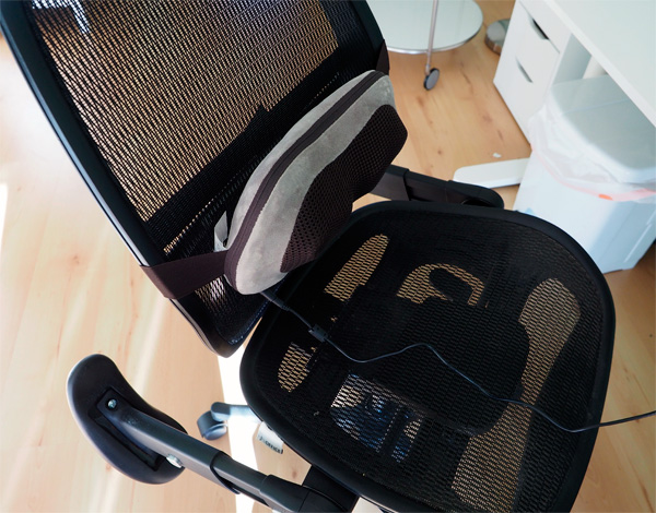 Удобнее всего ее закреплять на офисном кресле в нужной зоне. В данном случае - поясничная зона.