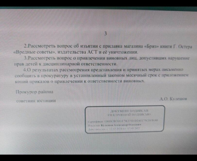 Хотелось бы спросить "Прокурора района советника юстиции А. О. Кулешова" каким законом регламентируется "право детей к дисциплинарной ответственности" (неужели Конституцией после ее обнуления?) и каким законом предусмотрена ответственность за детскую дисциплинарную безответственность?