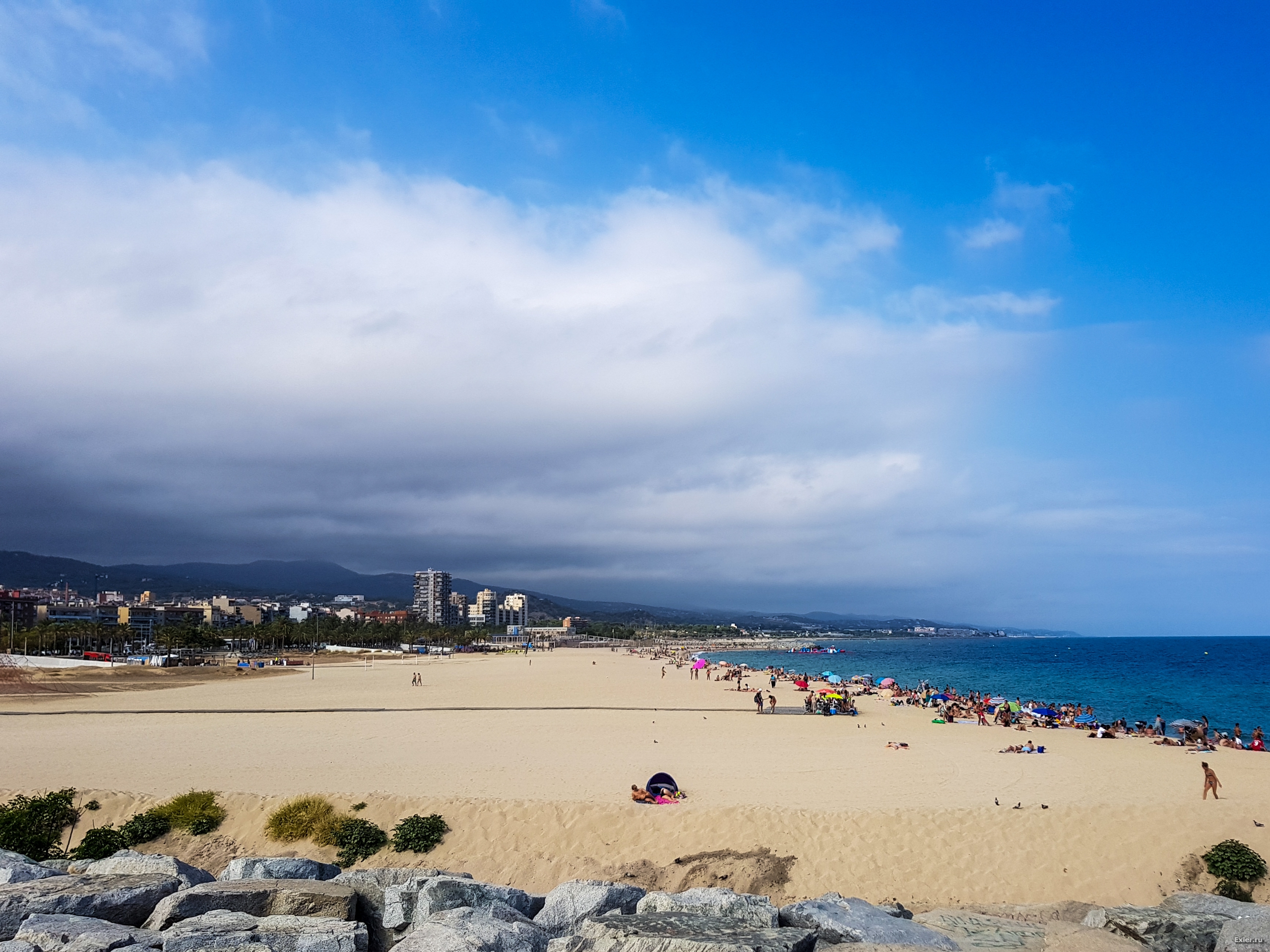 Что характерно, самый сезон, а пляж в Матаро почти пустой. Просто город нетуристический, отелей мало. Причем вот этот огромный пляж - искусственный, насыпной. Насыпали, чтобы привлекать туристов. А их тут нет.