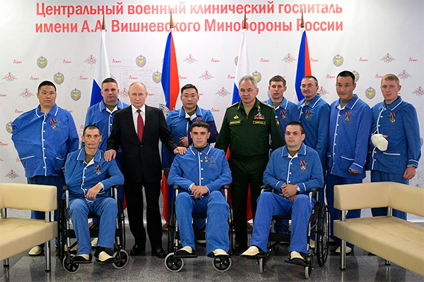 Вчера двойничок в Центральном военном госпитале вручал медальки военнослужащим, получивших ранения в ходе специальной гуманистической операции.