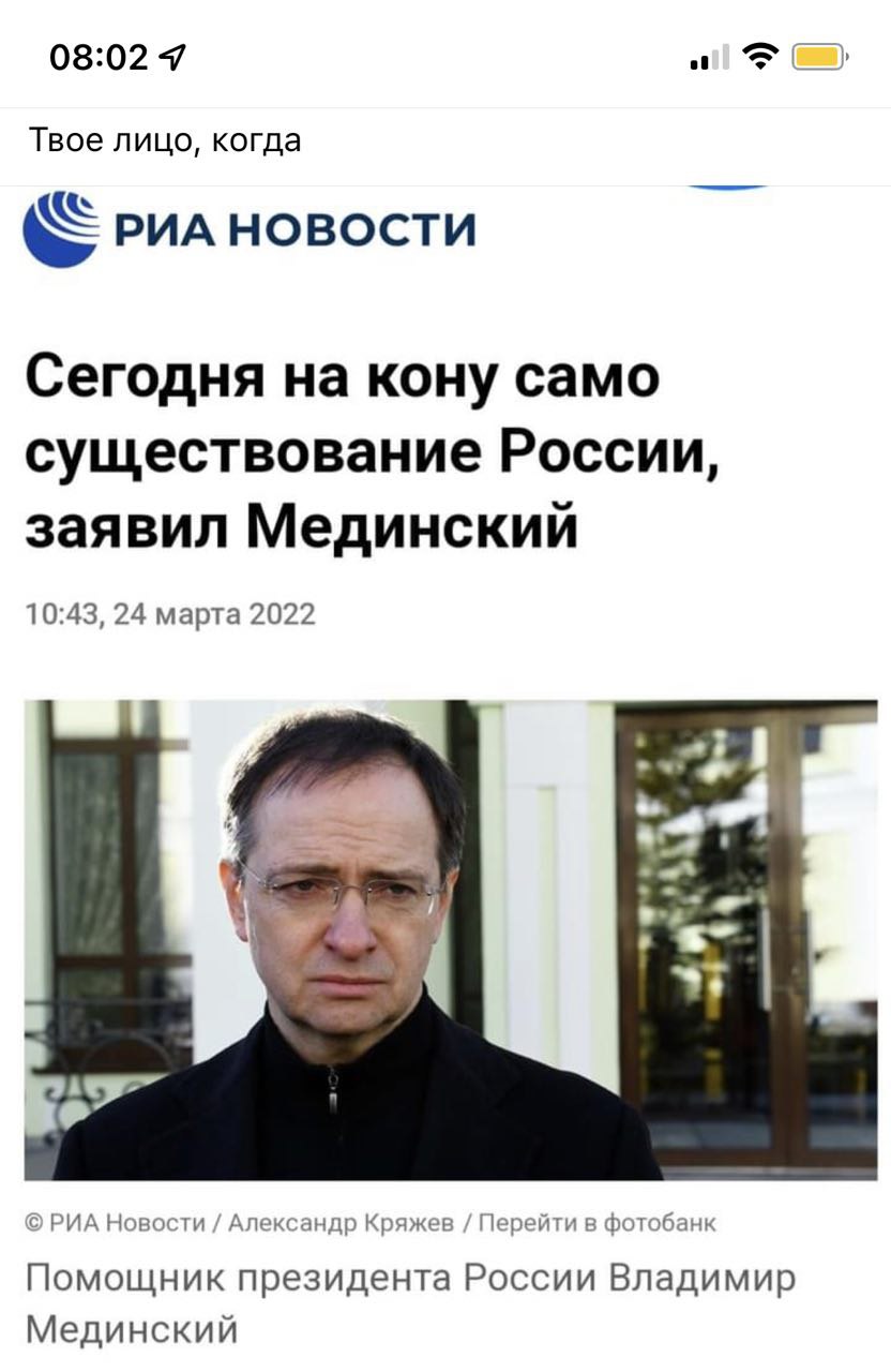 Как ни странно, Мединский совершенно прав - на кону сегодня само существование России. И вот тут возникает резонный вопрос: а что же вы, уроды, само существование России поставили на кон?