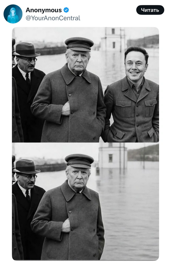 «Мы наблюдали за тем, как Илон проходит через пять стадий принятия. Сначала было отрицание, когда Маск прыгал на сцене на митингах Трампа. Затем гнев, когда Маск кричал на этих митингах и кидал зиги. Затем торг, буквальный торг с Трампом о покупке у него Tesla на лужайке Белого дома. Затем депрессия, когда Маск выглядел подавленным в интервью с Ларри Кадлоу на Fox News и сказал, что ему удается вести другие свои дела «с большим трудом». И, наконец, принятие сейчас. Мы наблюдаем, как он медленно осознает, что, возможно, крупно облажался».
