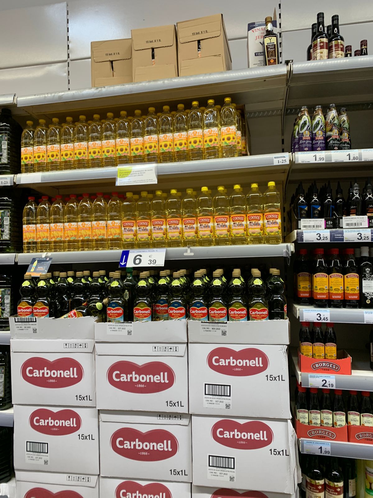 Приехал за какой-то мелочевкой в "Меркадону", а там обстановка - как в первые дни коронавирусного дурдома. Туалетная бумага, правда, пока еще есть, но ряды заметно поредели. Отдел с питьевой водой наполовину пустой. В винном отделе разобрали две трети дешевого вина в пакетах. В отделе курицы-индейки - только остатки. В секции масла тоже половину расхватали и введено ограничение на количество, отпускаемое в одни руки (четыре обычных бутылки или одна трехлитровая).