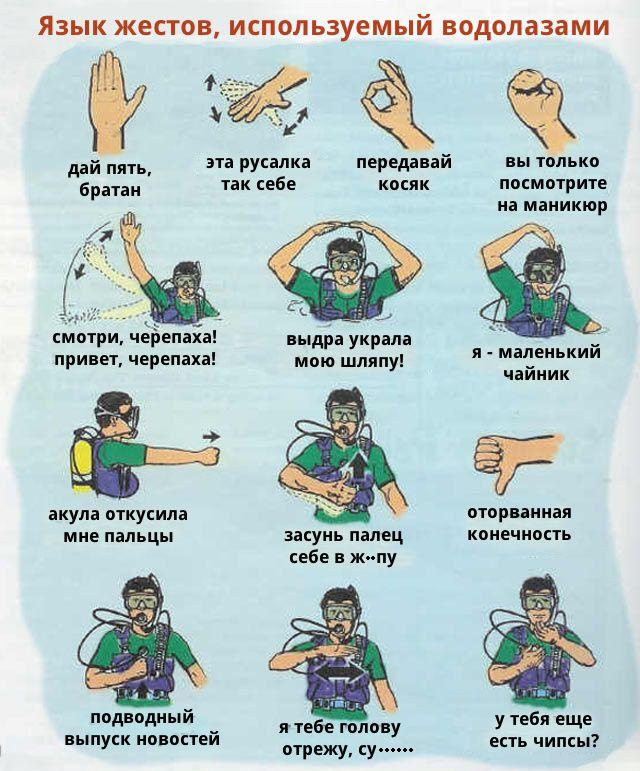 И действительно. Но под водой, будучи в маске, иногда и не разглядишь, где у другого дайвера большой палец находится - под остальными пальцами или поверх них.