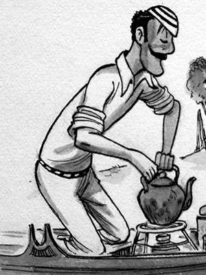 ну, вам надо тренировать воображение - я без труда представил себе стоящего у костра человека, с гранёным стаканом и всунутым в него кипятильником в одной руке, а другой рукой озадаченно почёсывающего бороду... 😄