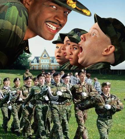 Это не бойскауты ни разу. Верхнее фото — фильм «Майор Пэйн» про наставника в детской кадетской школе, учреждении вполне военизированном.