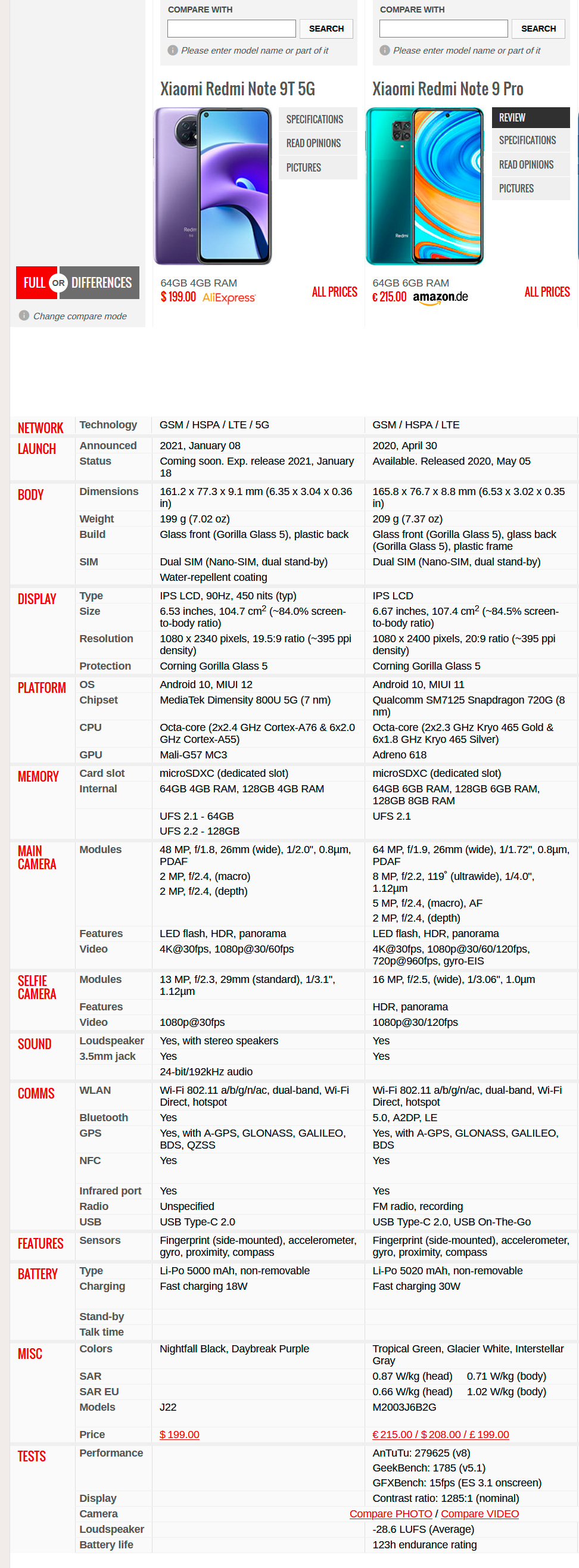 И даже в этом случае практически все одинаковое (платформы отличаются достаточно незначительно), но у Note 9 есть сверхширик. Так что единственный плюс 9T - это поддержка 5G. Которая практического смысла сейчас не имеет.