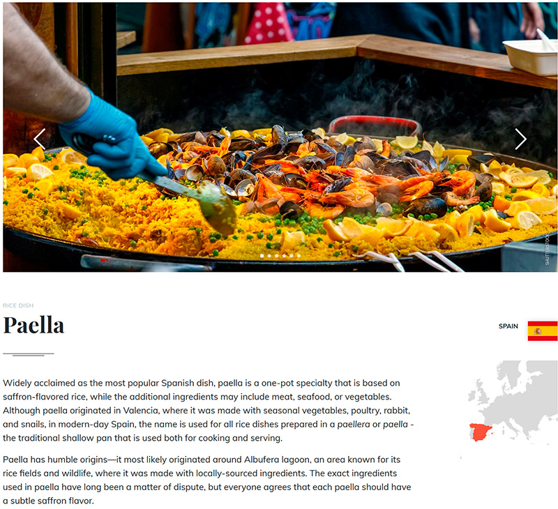 Все такие атласы, конечно, штука очень спорная и вызывающая вопросы, но по той же Испании, насколько я могу судить, неплохо приведены блюда, характерные для определенных регионов или происходящие из определенных регионов, как, например, паэлья, которую сейчас готовят по всей Испании, но появилось это блюдо в Валенсии.