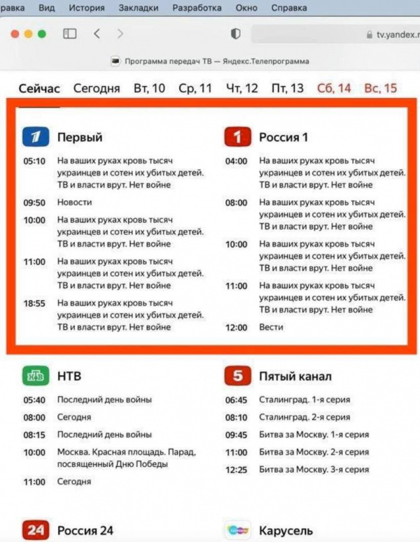 P.P.S. Тем временем программа телепередач российского ГовноТВ была немного скорректирована.