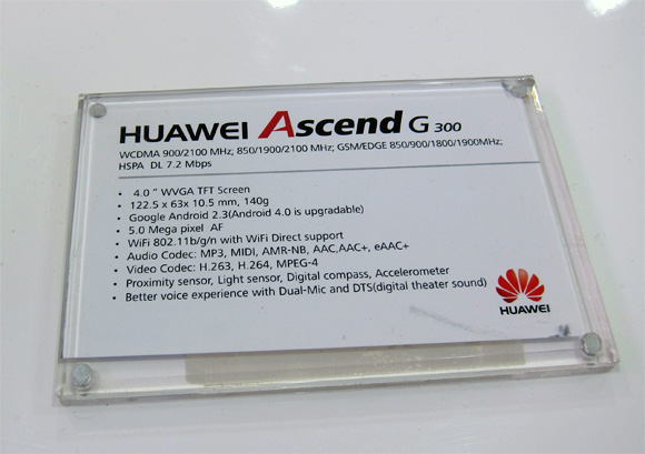 Также на стенде представили бюджетную модель смартфона Huawei Ascend G300, который будет продаваться за 200 с чем-то евро.