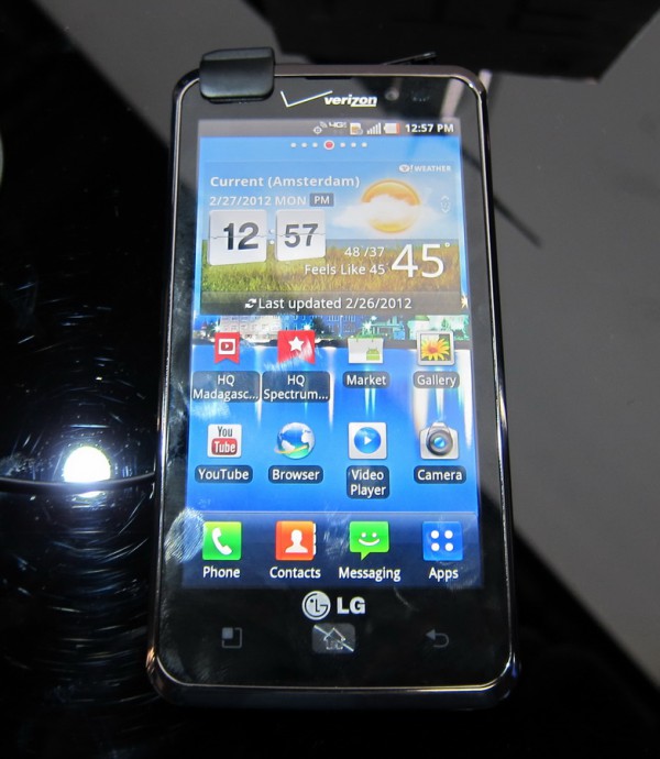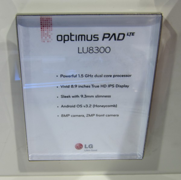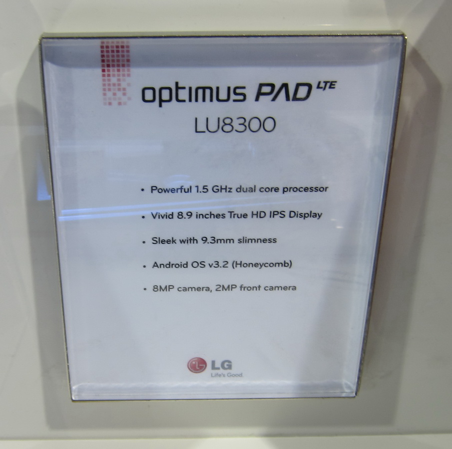 На стенде LG были представлены новые смартфончики и один планшет. Веризоновская версия одного из смартфонов показалась довольно унылой.