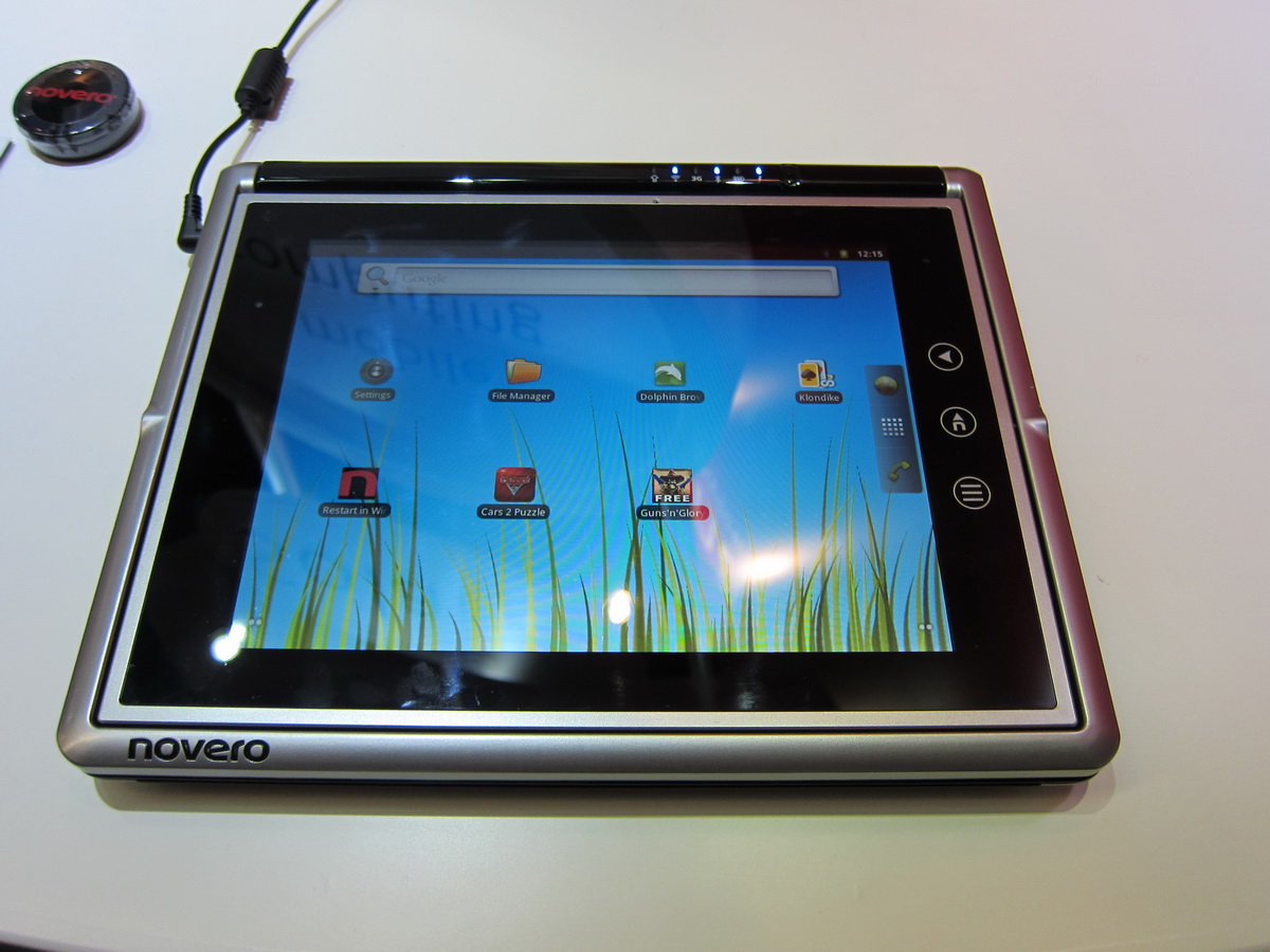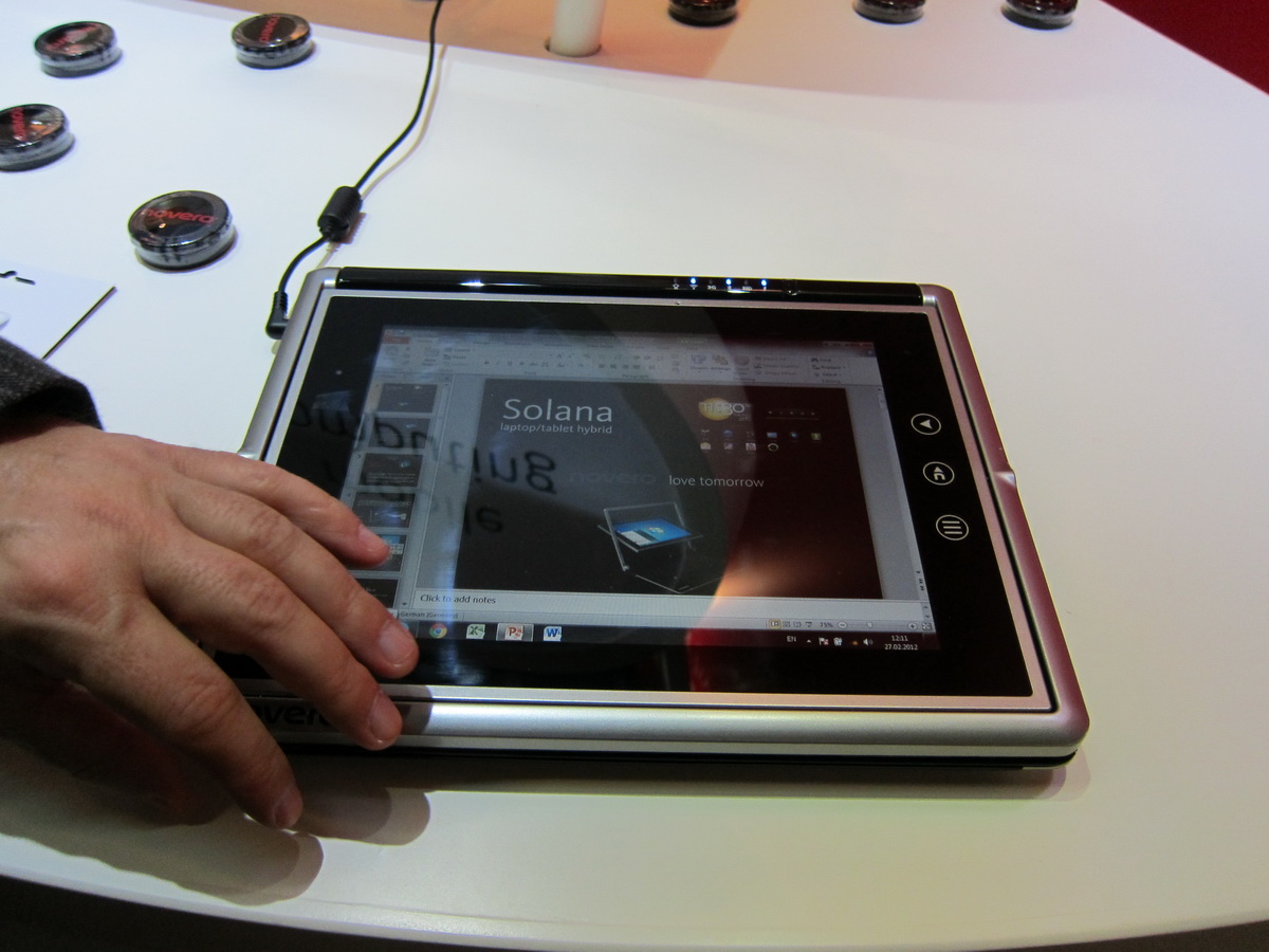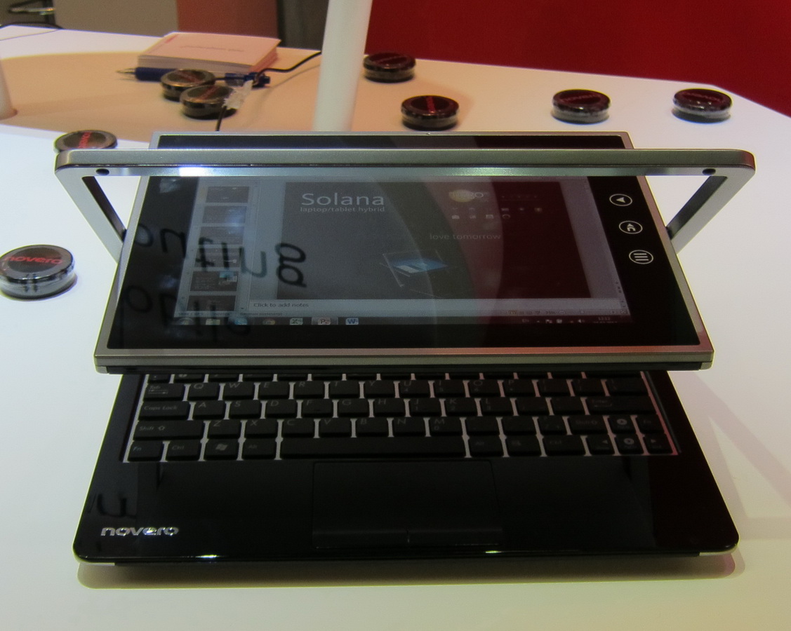 На стенде фирмы Novero был представлен забавный гаджет. На первый взгляд - это обычный ноутбук под Windows 7.