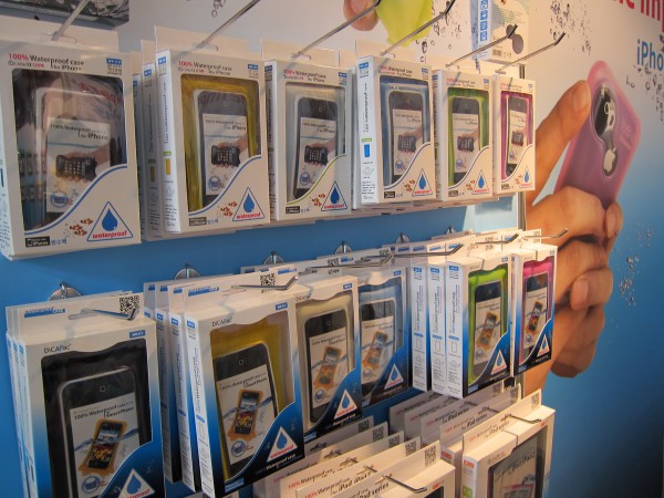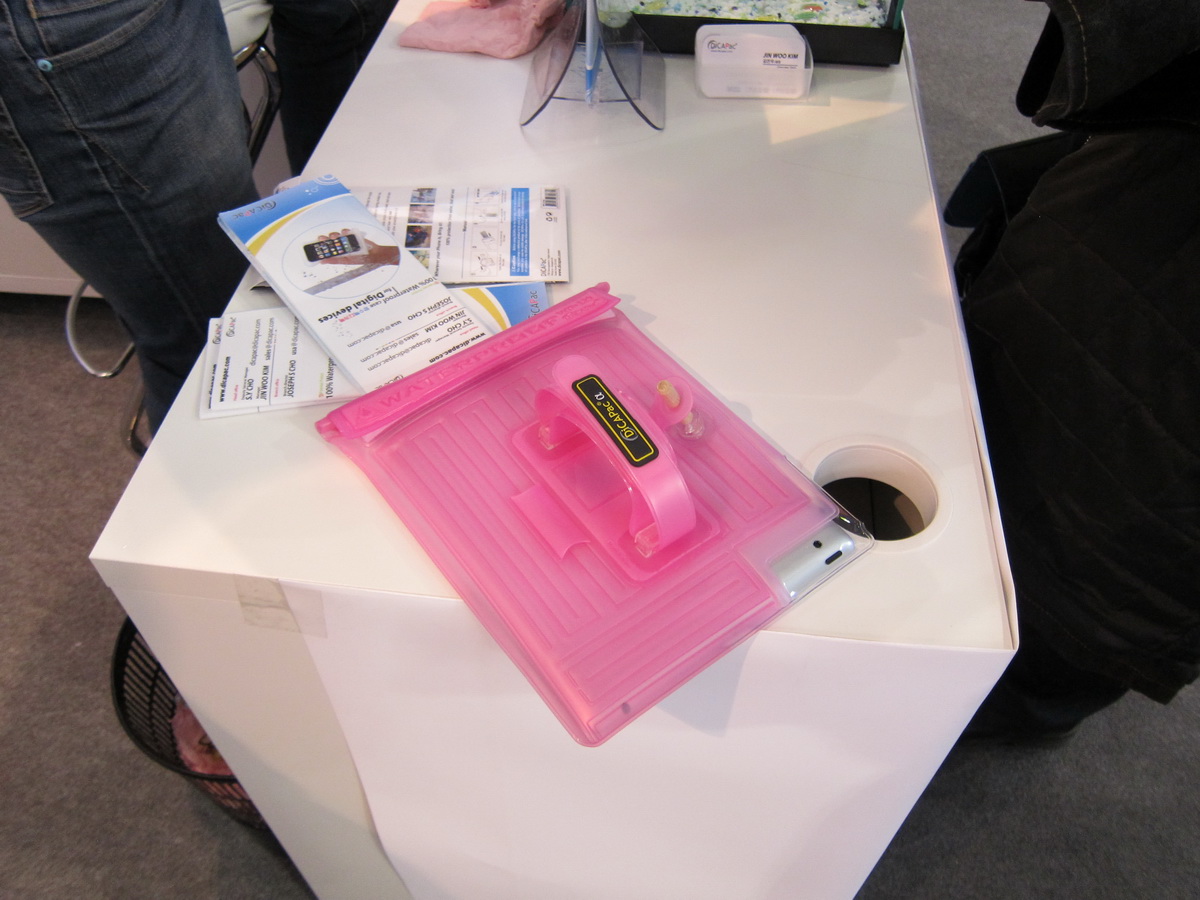 На выставке продемонстрировали две технологии защиты гаджетов от воды. Первая технология - традиционная: фирма DiCAPac представила самые разнообразные защитные чехлы для смартфонов и планшетов.