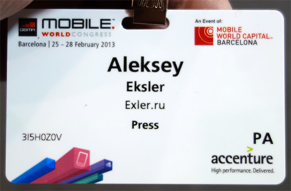 Отработал я на Mobile World Congress 2013, начинаю выкладывать отчеты. Как и в прошлом году, ездил туда сам по себе и регистрировался просто как блогер - зарегистрировали, сделали аккредитацию.