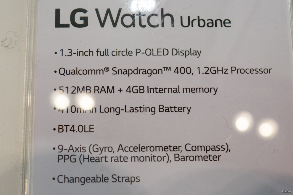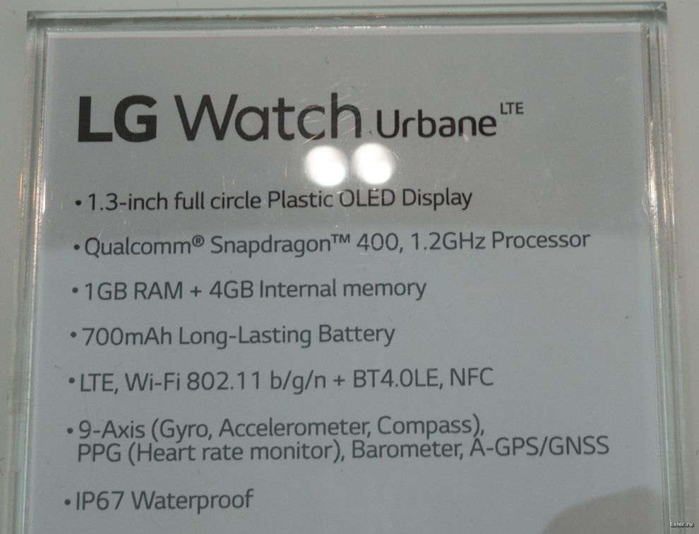 А вот характеристики. От LG G Watch R практически ничем не отличаются.