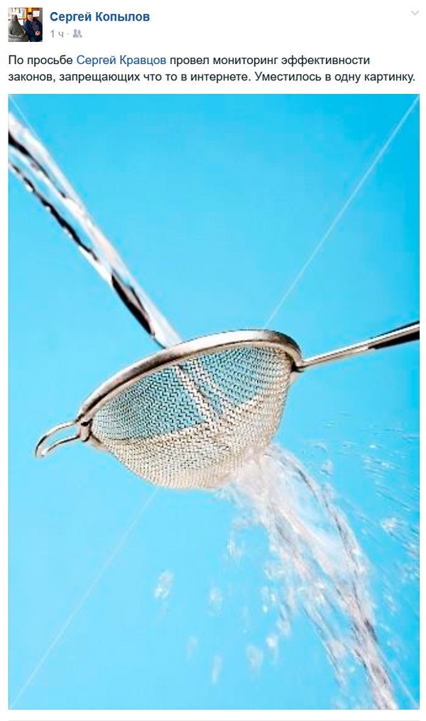 Символичная картинка вдвойне - и запрет непробиваем,как сито. И вот если вода бежала струйкой, орошая маленький пятачок, то после сита она во все стороны расплескивается, увеличивая площадь орошения.