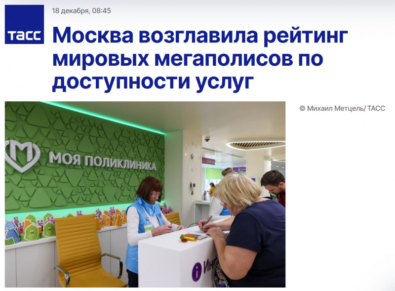 Попался на глаза этот заголовок в ТАСС, и я аж чаем поперхнулся. Ага, ага, возглавила рейтинг мировых мегаполисов - разбежались, как же!