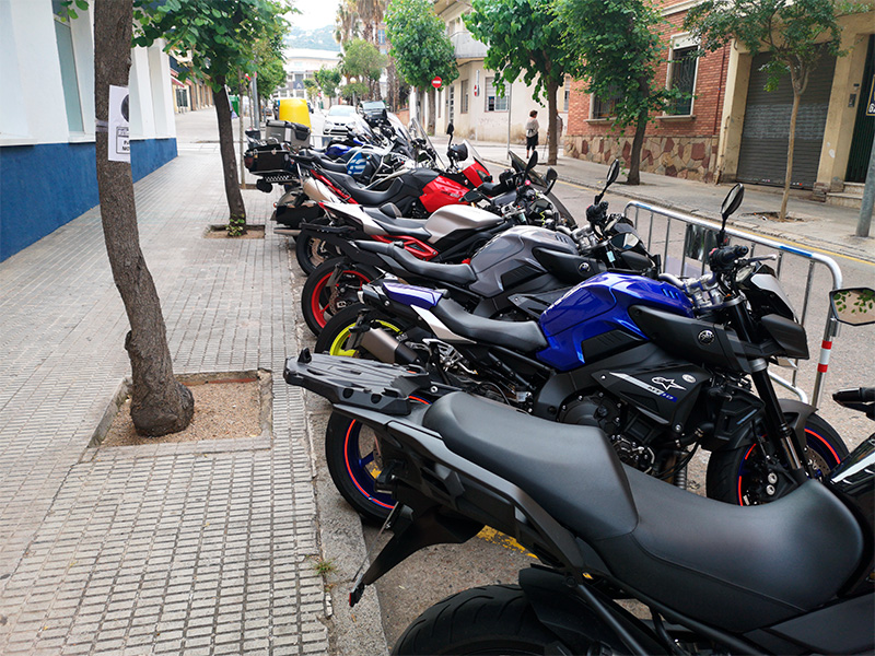 Вчера вечером идем на встречу с друзьями, смотрим - рядом с гостиницей Balmes висит объявление о том, что машины тут ставить нельзя, парковка рядом с гостиницей временно предназначена исключительно для мотоциклов. И действительно - мотоциклы стоят стройными рядами.