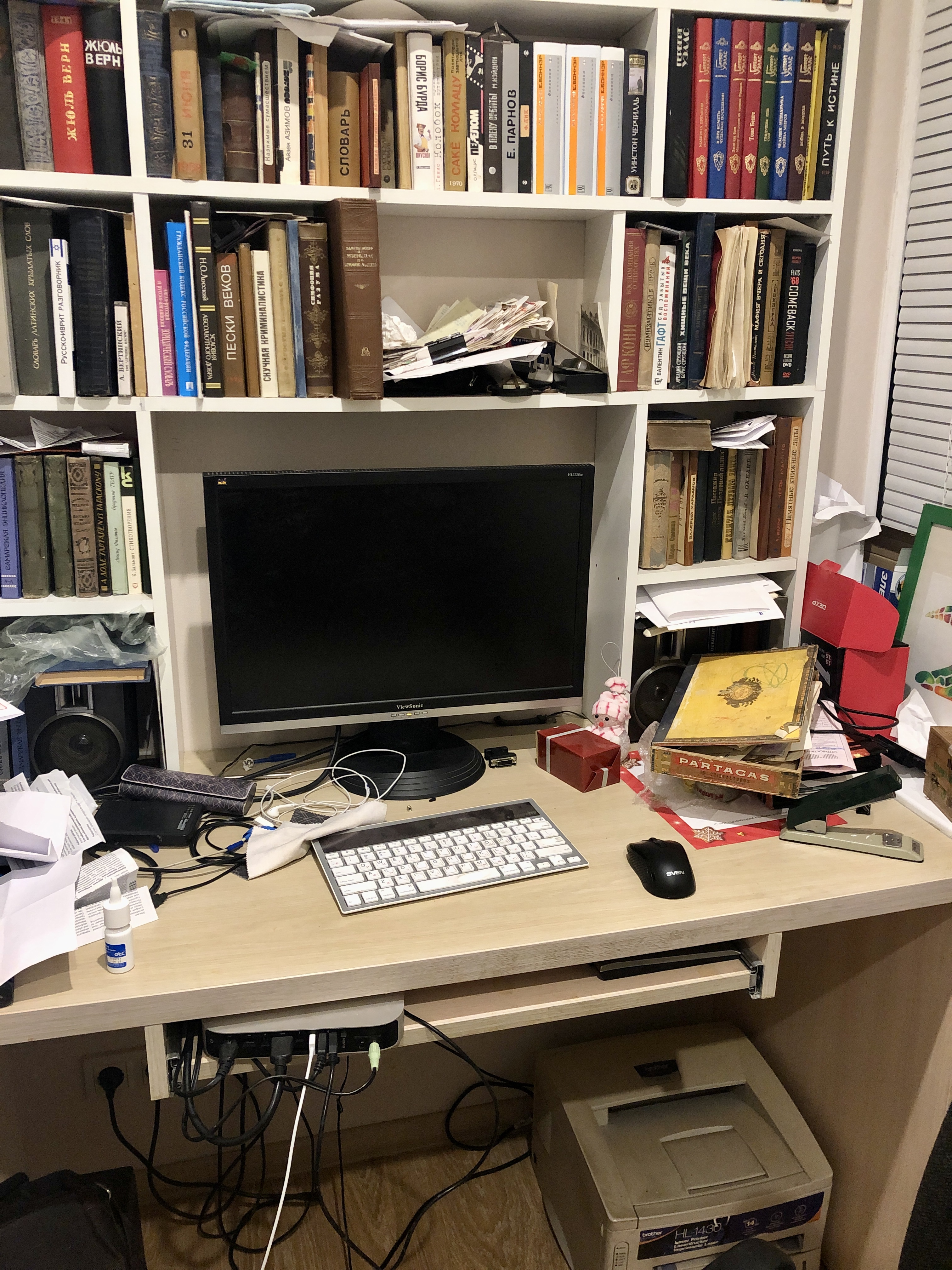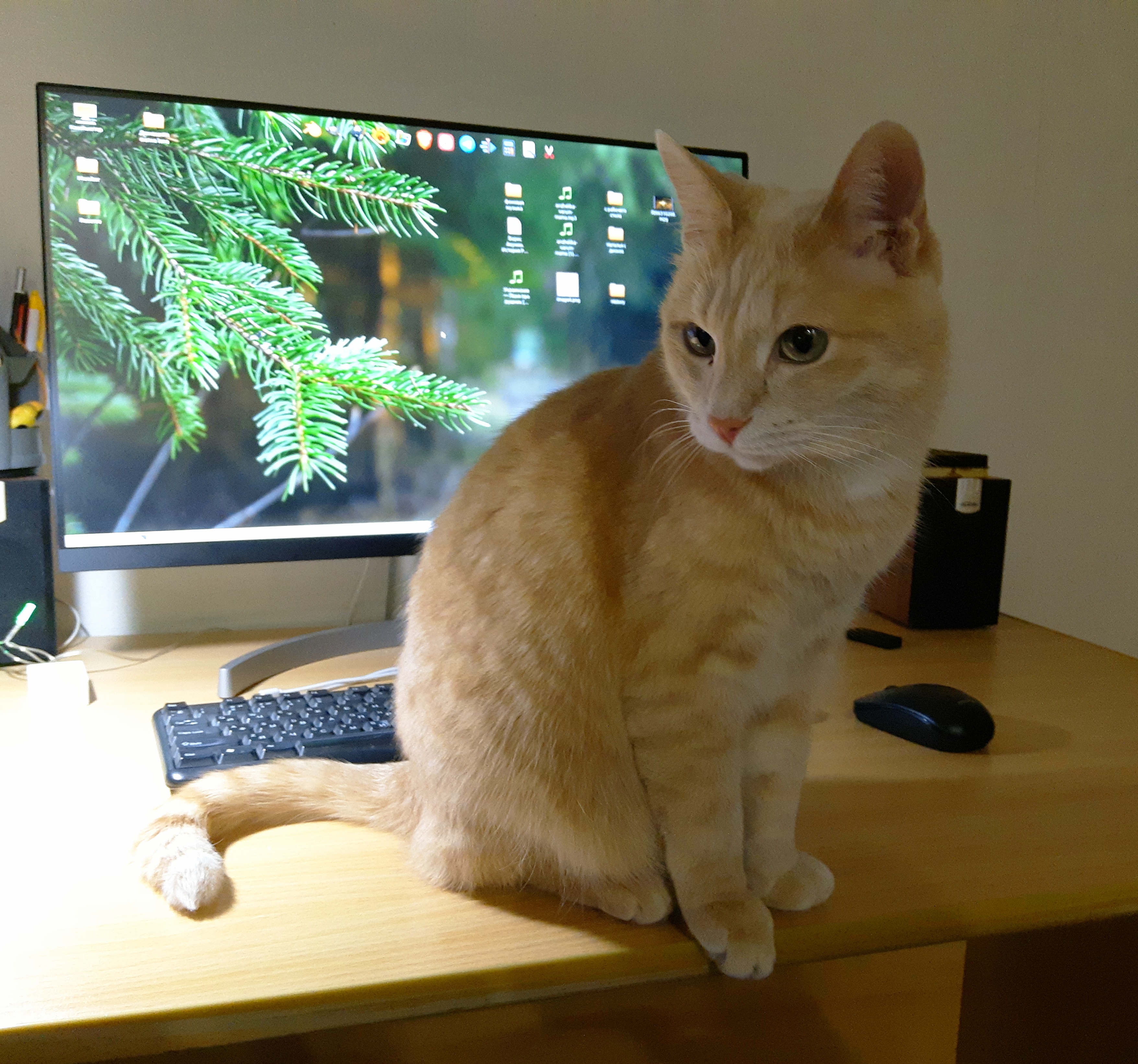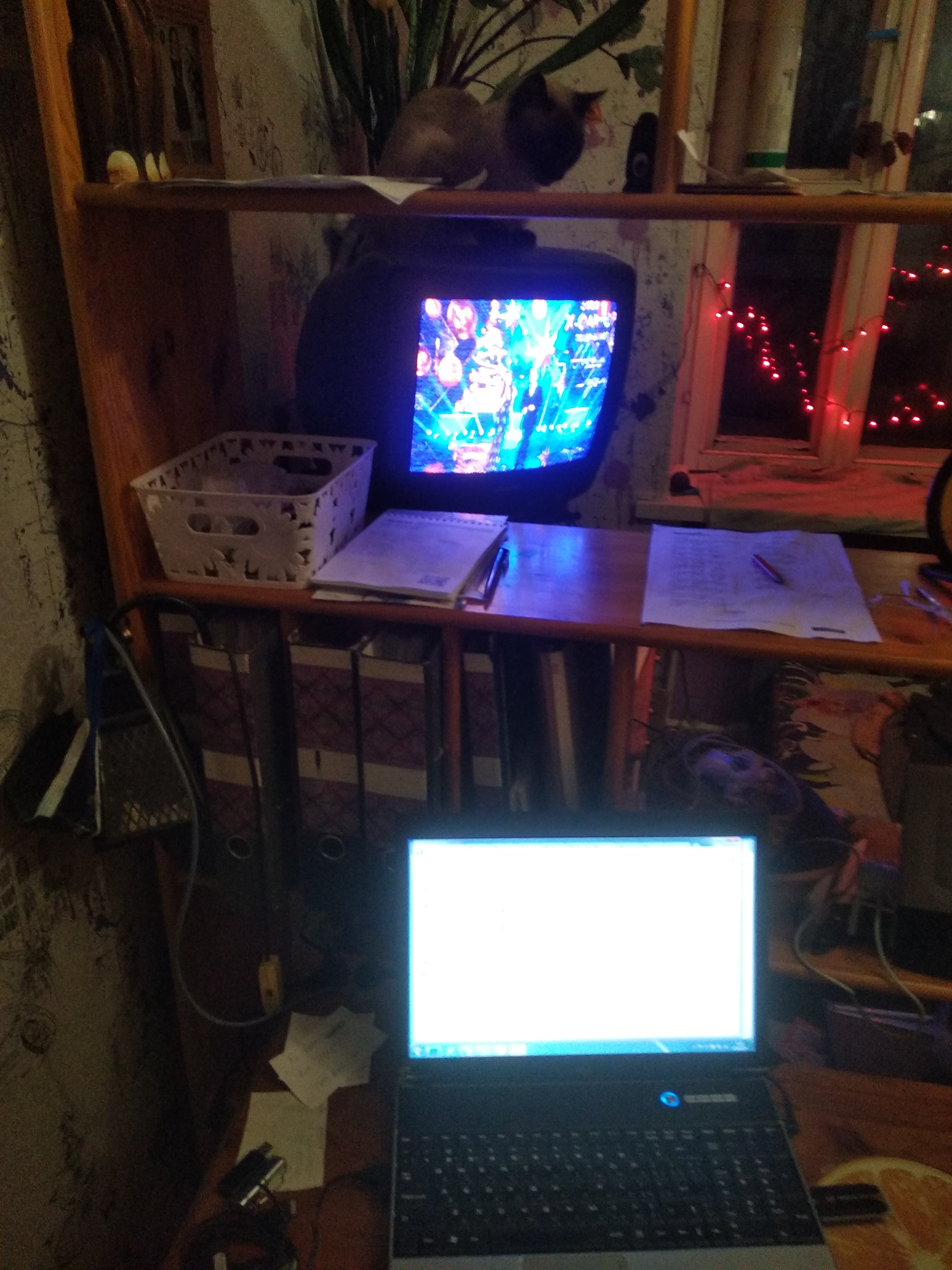 Староновогодний беспорядок, обычно провода аккуратно от кошек спрятаны и мышь где надо мышь.