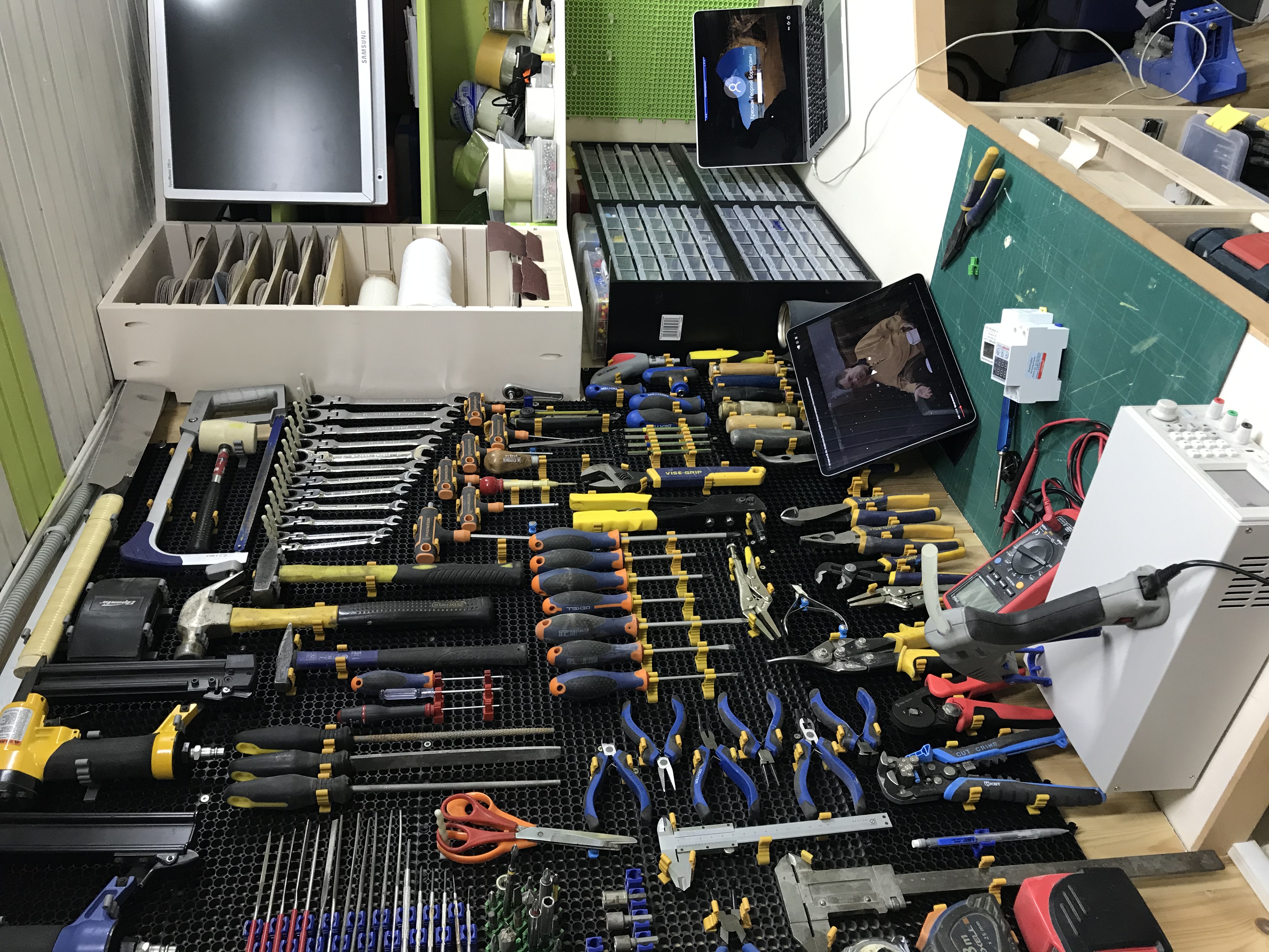 Там где чёрная стена, это 2 набора мастер, плюс пластиковые штанги и магнитные крепления, да ещё полкоробки всяких креплений в запасе осталось.